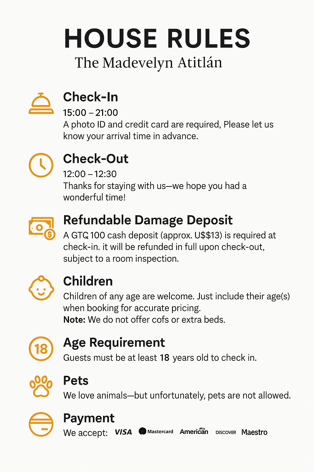 Nearby attractions include Lake Atitlán and the Mayan ruins of Tikal